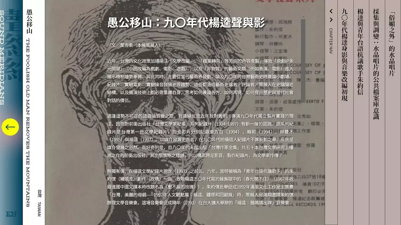 「愚公移山:九〇年代楊逵聲與影」線上展首頁截圖(圖片取自:「聲經絡」網站)